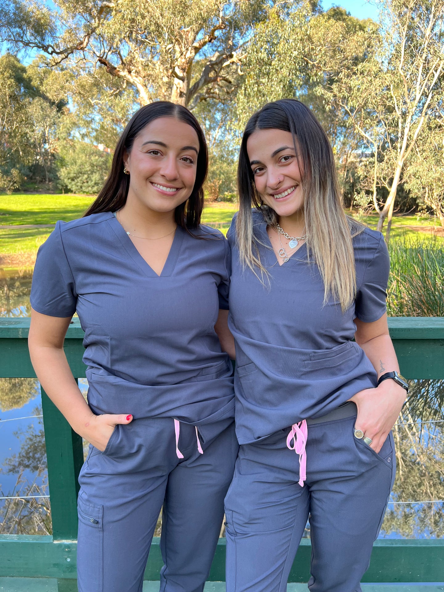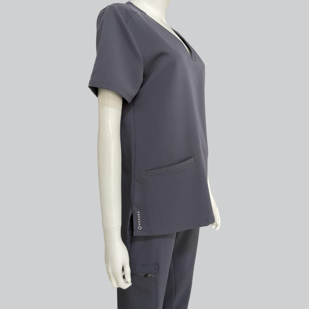 Meet your new best friend! Our Becky Three Pocket Scrub Top has everything you need featuring: